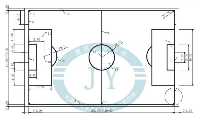 11 人制足球場地平面示意圖。