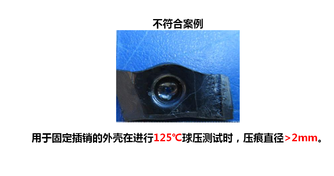 問(wèn)題及提升方案:外殼置于125℃烘箱中,支撐外殼的插銷件部分的材料變軟變形嚴(yán)重,不滿足GB 4943.1-2011標(biāo)準(zhǔn)第4.5.5條要求;建議外殼供應(yīng)商改進(jìn)外殼材質(zhì)配料,增強(qiáng)外殼材料在熱環(huán)境下的硬度。