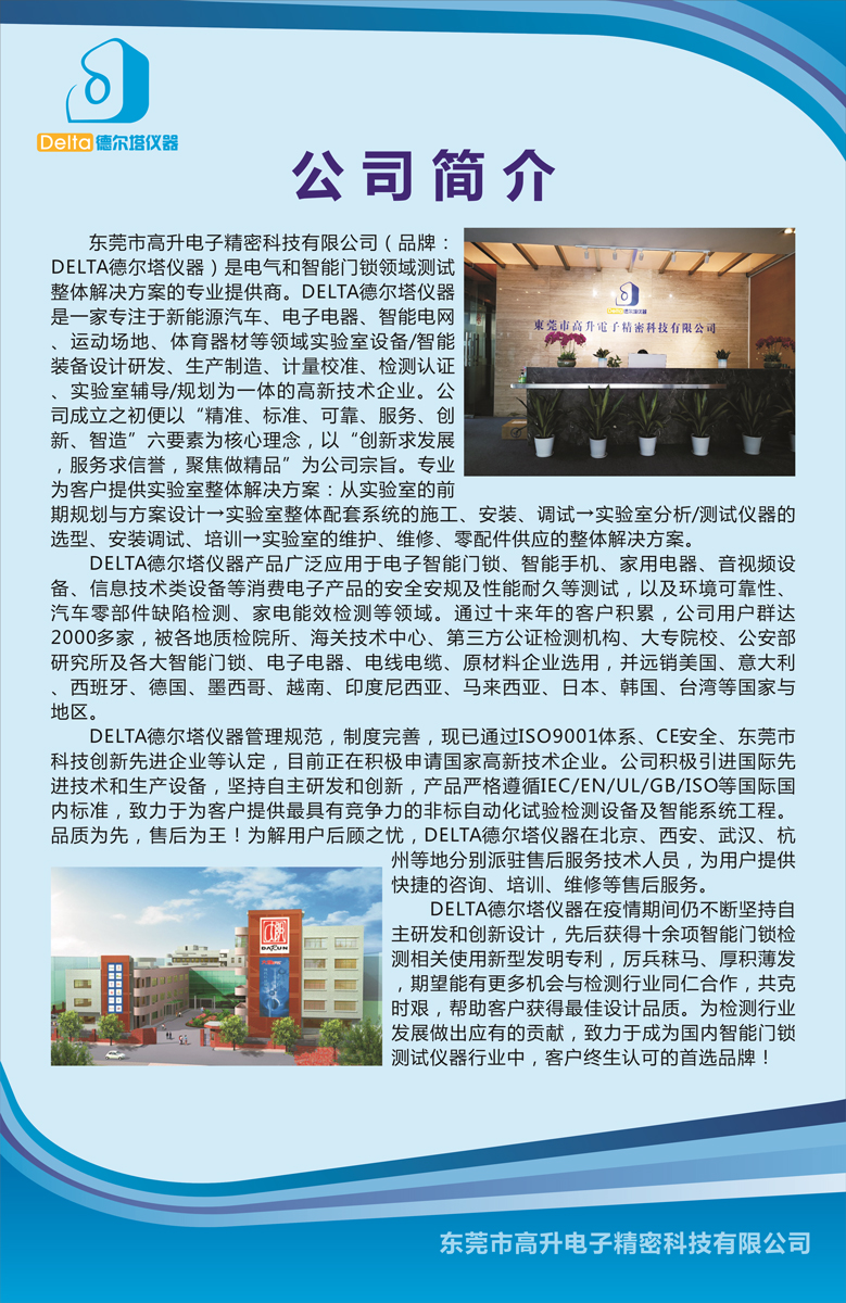 隨后眾多參會代表參觀了南孚電池的實驗室和生產(chǎn)車間,諸位與會代表對南孚電池的智能門鎖專用電池技術(shù)給予了充分的肯定。以下是Delta德爾塔儀器公司為南孚電池實驗室非標(biāo)定制的雙工位智能門鎖壽命耐久性試驗機,該試驗機不僅能夠滿足智能鎖的壽命耐久性測試,還能針對智能鎖在測試過程中的耗電狀態(tài)進行實時的電流、電壓、功耗、溫升等數(shù)據(jù)的動態(tài)監(jiān)測,并能以曲線的形式記錄下來,設(shè)備具有實時報警、斷電保存、數(shù)據(jù)傳輸?shù)裙δ?,方便客戶摸底、排查、研發(fā)改進產(chǎn)品的合格率良品數(shù)據(jù)。