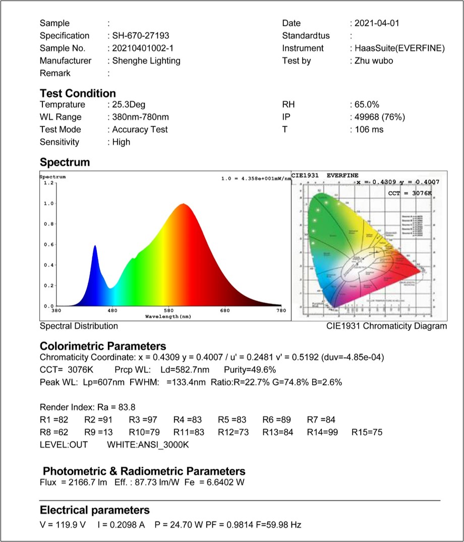 ra是顯色指數。為了對光源的顯色性進行定量的評價,引入顯色指數的概念。以標準光源為準,將其顯色指數定為100,其余光源的顯色指數均低于100。物體在太陽光和白熾燈的照射下,顯示出它真實的顏色,但當物體在非連續(xù)光譜的氣體放電燈的照射下,顏色就會有不同程度的失真。我們把光源對物體真實顏色的呈現程度稱為光源的顯色性。取15種常見顏色的顯色指數的平均值,記為Re。