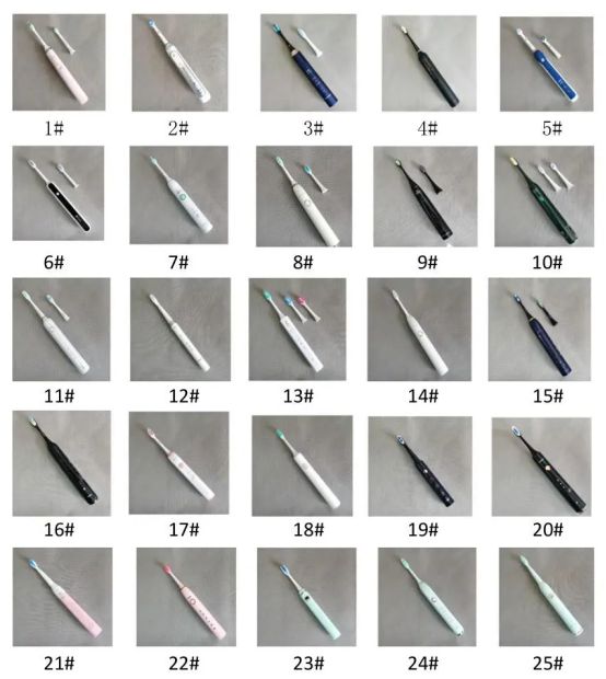 本次比較試驗(yàn)電動(dòng)牙刷的樣品,由中國消費(fèi)者協(xié)會(huì)工作人員以普通消費(fèi)者身份分別從京東商城、蘇寧易購和天貓商城等主要網(wǎng)絡(luò)交易平臺(tái)隨機(jī)購買,代表當(dāng)今市場(chǎng)的主流和趨勢(shì)。樣品均為成人充電式電動(dòng)牙刷,牙刷刷頭為可拆卸刷頭。樣品共計(jì)25款,涉及國產(chǎn)及國外共計(jì)20個(gè)品牌,有10款樣品帶有多種類型刷頭,以方便不同需求人群選擇。樣品購買價(jià)格從60元到1000元不等。