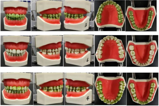 25款樣品通過對(duì)牙模污物清潔效果的比較,16款樣品的清潔效果相對(duì)較好;有4款樣品欠佳,清潔效果較差。見圖1、2、3。