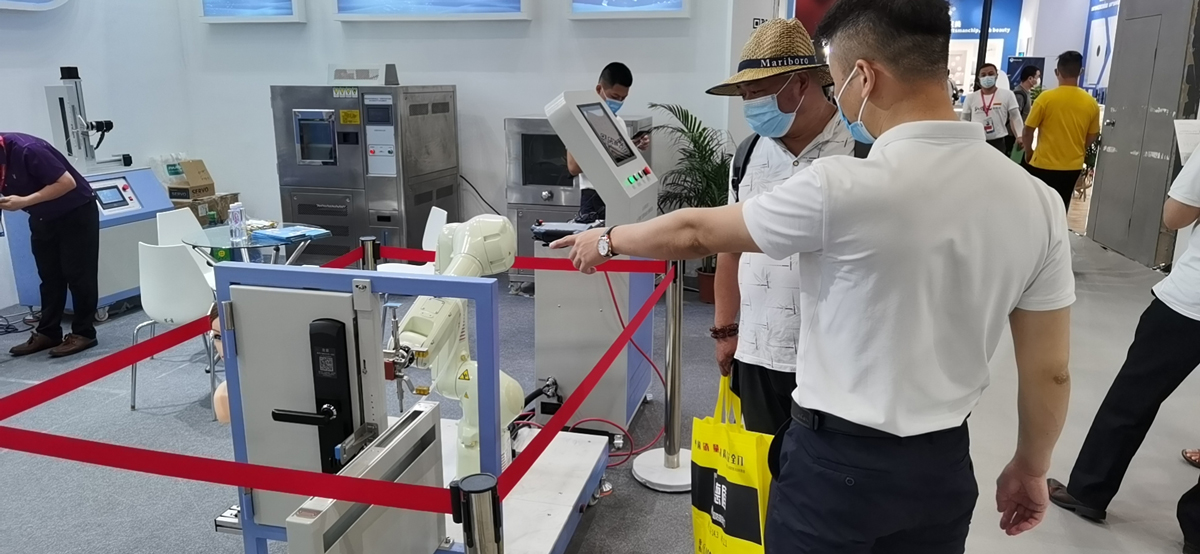 現(xiàn)場(chǎng)客戶在咨詢相關(guān)智能鎖檢測(cè)設(shè)備