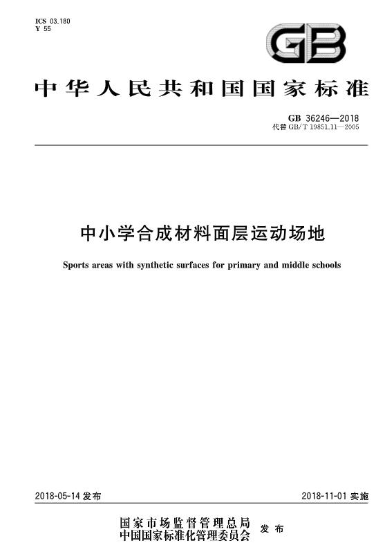 GB 36246-2018《中小學合成材料面層運動場地》,已于2018年11月1日開始實施。