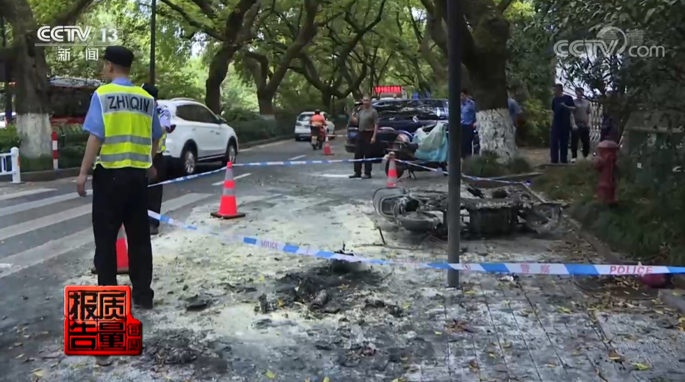 杭州市風景名勝區(qū)消防救援大隊副大隊長 韋贊:經(jīng)過杭州市消防救援支隊火災調(diào)查處,現(xiàn)場對事故電動車殘骸的調(diào)查取證,并通過綜合視頻監(jiān)控和車輛勘驗情況,初步認定當事人駕駛的電動自行車的電池不是車輛原配電池,為軟包裝鋰電池,容量較大,排除電氣線路故障和外來火源引起火災,初步認定原因為鋰電池在行駛過程中,發(fā)生熱失控引發(fā)爆炸。