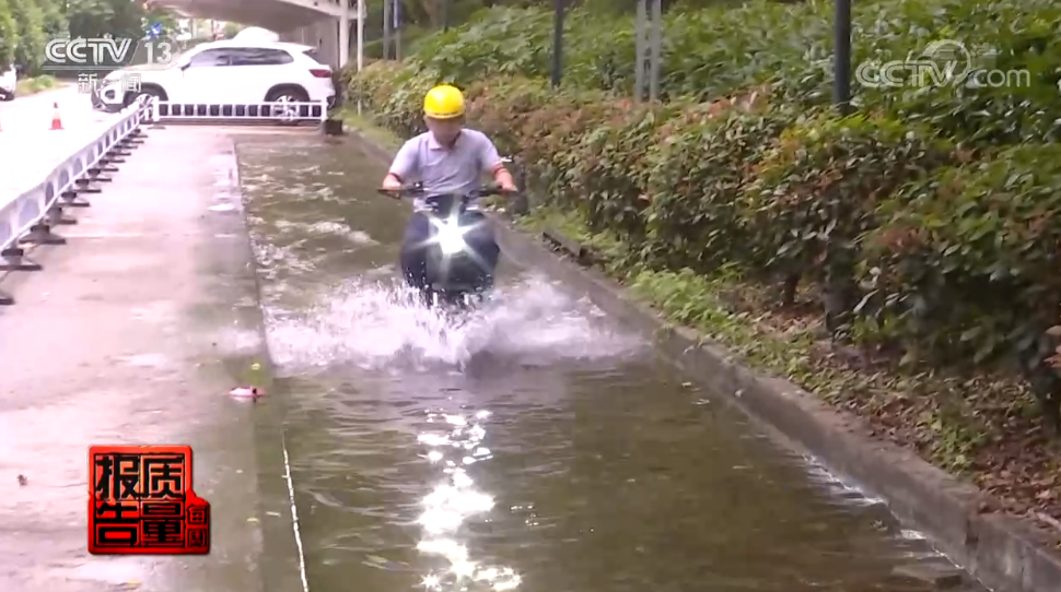 國家輕型電動車及電池產(chǎn)品質(zhì)量監(jiān)督檢驗中心檢驗員 張力格:當我們遇到下雨天或者通過積水路面時,如果雨水進入乘車體內(nèi),當關鍵元器件,比如說控制器、電機等防水性能做的不夠好,就可能會導致絕緣性能下降。