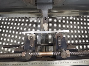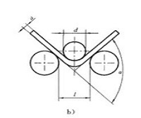 彎曲試驗時,試樣兩臂的軸線保持在垂直于彎曲軸的平面內(nèi)。如為180°角的彎曲試驗,按照相關(guān)產(chǎn)品標(biāo)準(zhǔn)的要求,將試樣彎曲至兩臂相距規(guī)定距離且相互平行或兩臂直接接觸。
