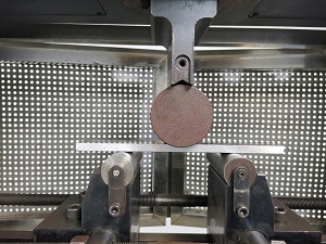 彎曲試驗通常為三點彎曲,當(dāng)用相關(guān)產(chǎn)品標(biāo)準(zhǔn)規(guī)定的彎頭直徑給試樣施壓到規(guī)定的角度后,檢測試樣彎曲面是否有裂紋等缺陷。
