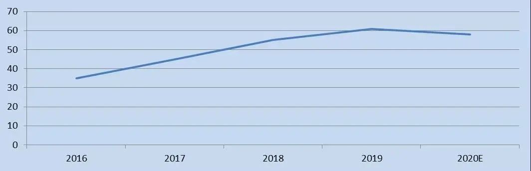 圖3 近五年智能門(mén)鎖頭部企業(yè)總規(guī)模變化示意圖