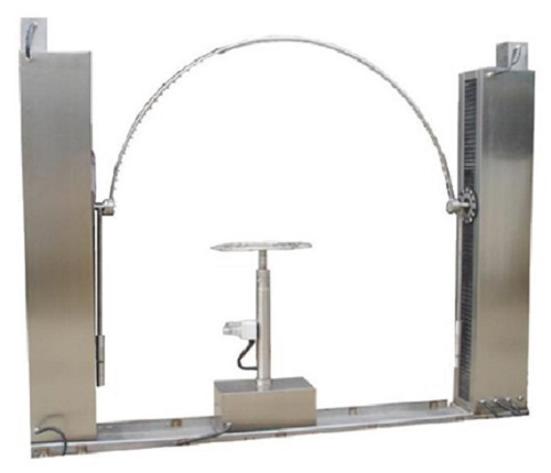 1、擺管式淋雨試驗(yàn):將試樣位于半圓形擺桿下淋水試驗(yàn)持續(xù)10min(轉(zhuǎn)臺(tái)需完全開(kāi)孔,避免擋住試驗(yàn)下方的濺水);擺管擺動(dòng)角度為垂直方向±180°。擺動(dòng)周期12S。