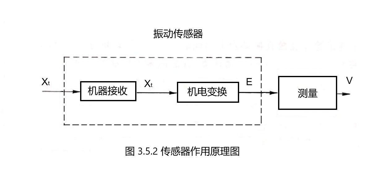 振動(dòng)傳感器的作用原理可分為兩個(gè)部分,即機(jī)械接收和機(jī)電變換,如圖3.5.2所示。機(jī)械接收部分的作用是將被測(cè)機(jī)械量Xt(振動(dòng)的位移、速度或加速度以及力和應(yīng)變等)接收為另一個(gè)適合于機(jī)電變換的中間機(jī)械量Xt。機(jī)電變換部分再將Xt變換為電量E(電動(dòng)勢(shì)、電流、電荷量或電阻、電容、電感等電參量)。