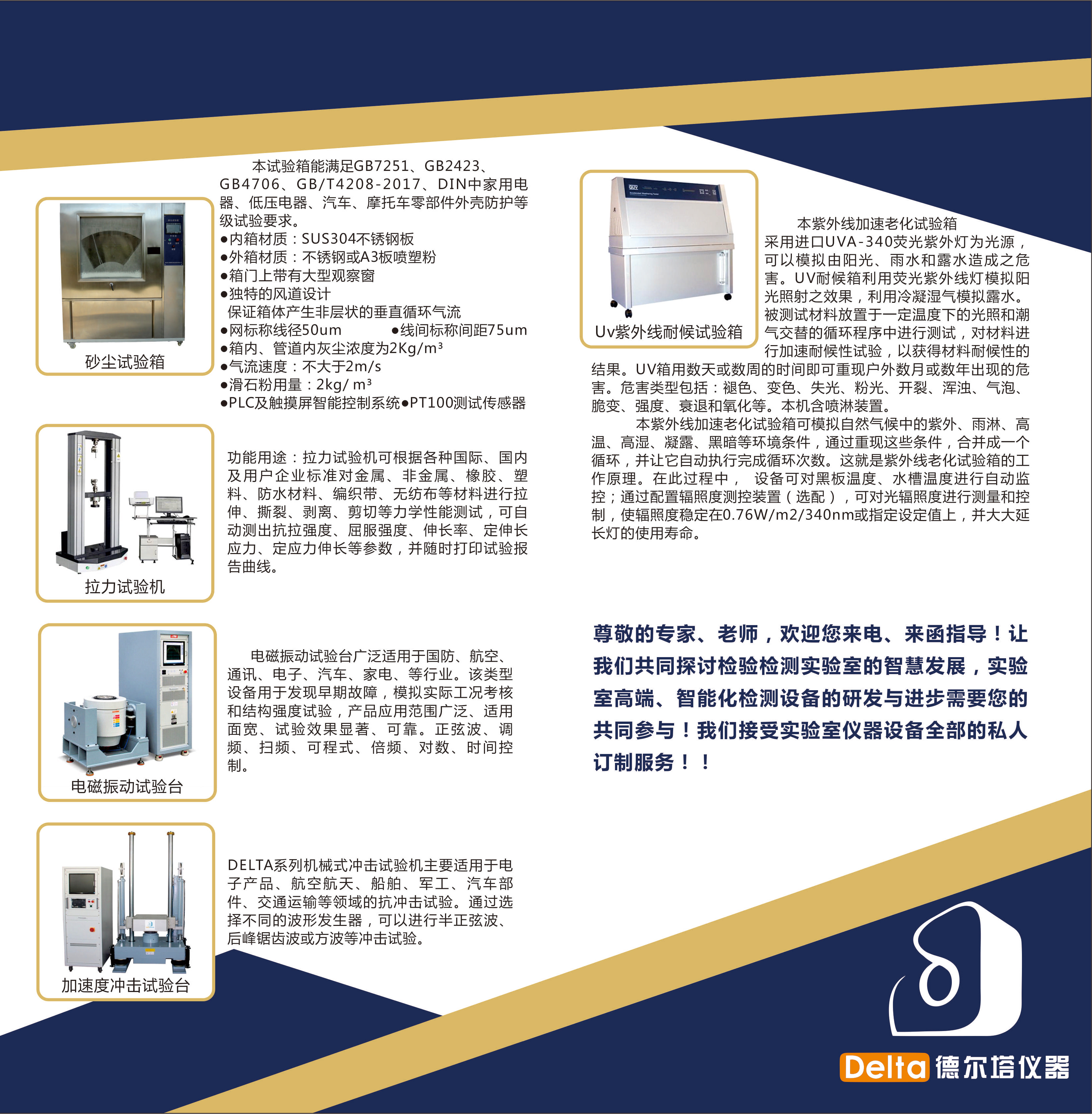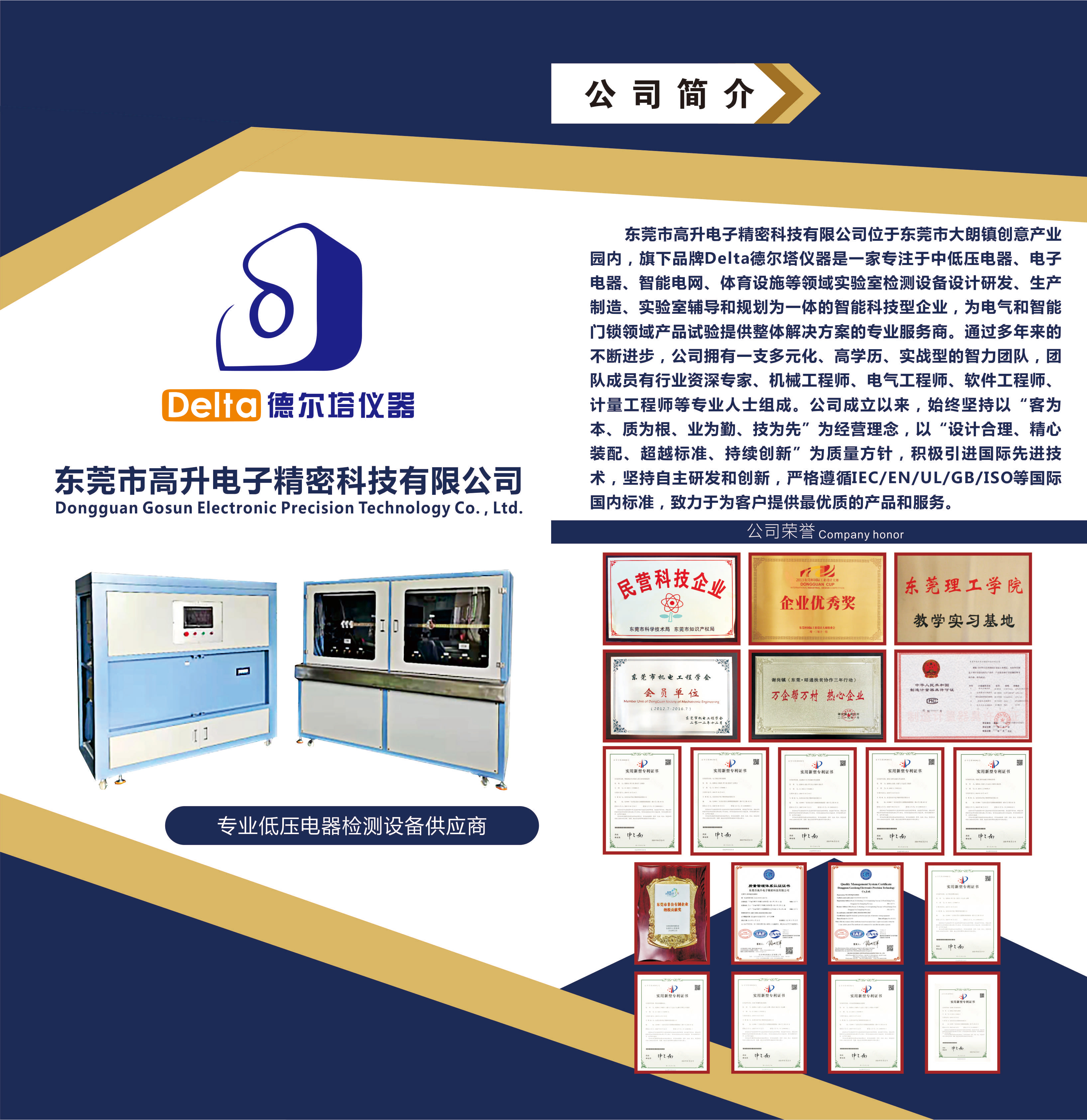 Delta德爾塔儀器是一家專注于中低壓電器、電子電器、智能電網(wǎng)、體育設施等領域?qū)嶒炇覚z測設備設計研發(fā)、生產(chǎn)制造、實驗室輔導和規(guī)劃為一體的智能科技型企業(yè),為電氣和智能門鎖領域產(chǎn)品試驗提供整體解決方案的專業(yè)服務商。