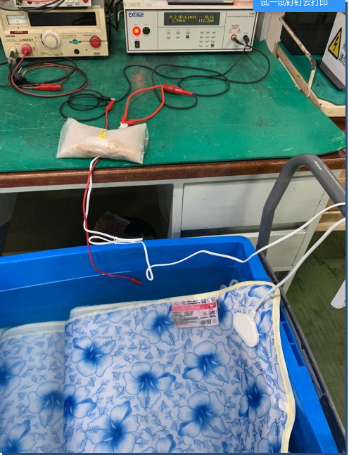 電熱毯產品在使用中很容易發(fā)生折皺,在折皺的情況下,發(fā)熱元件發(fā)熱量會更大。如果溫升過高,發(fā)熱元件上的絕緣層很容易損壞,或老化更快,容易導致觸電危險或著火危險。