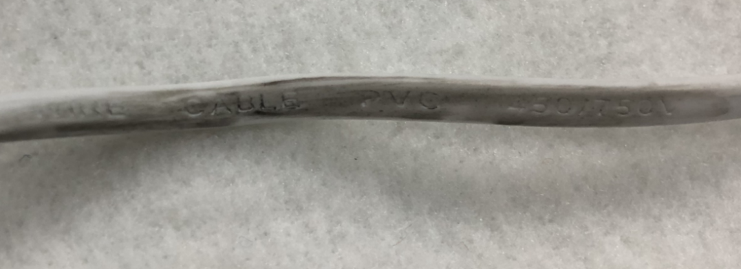 某電熱毯使用的電源軟線上僅標稱PVC,無型號規(guī)格,不滿足GB 5023系列標準要求,不符合GB 4706.1-2005和GB 4706.8-2008標準第25.8條的要求。