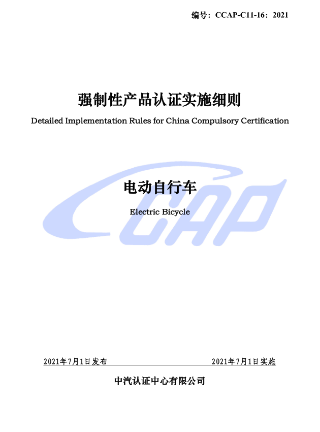 2021年6月23日,《認(rèn)監(jiān)委關(guān)于發(fā)布摩托車(chē)、電動(dòng)自行車(chē)強(qiáng)制性產(chǎn)品認(rèn)證實(shí)施規(guī)則的公告》(認(rèn)監(jiān)委2021年第8號(hào))發(fā)布了《強(qiáng)制性產(chǎn)品認(rèn)證實(shí)施規(guī)則 電動(dòng)自行車(chē)》(CNCA-C11-16:2021)(以下簡(jiǎn)稱新版規(guī)則),于2021年7月1日起正式實(shí)施,替代《強(qiáng)制性產(chǎn)品認(rèn)證實(shí)施規(guī)則 電動(dòng)自行車(chē)》(CNCA-C11-16:2018)(以下簡(jiǎn)稱舊版規(guī)則)。