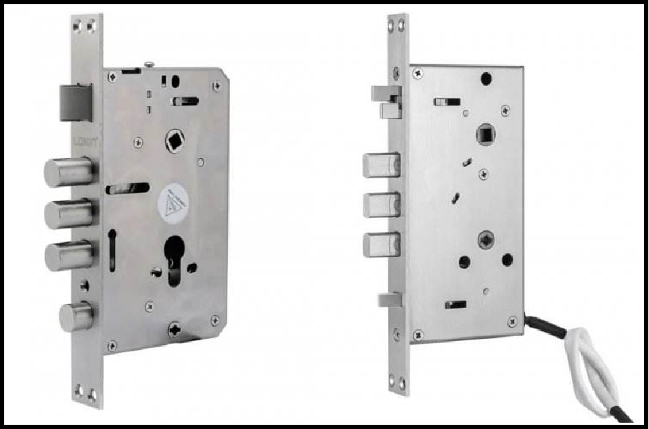機械鎖體就是將控制電機置于鎖具后面板上,由電機驅動直插式鎖芯轉動來控制鎖舌收回,從而完成解鎖。電子鎖體就是解鎖時由電機直接驅動鎖舌回收,關門時感應觸發(fā)舌被導向片壓住,鎖舌伸出便會完成自動上鎖。