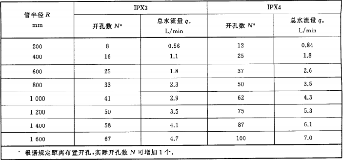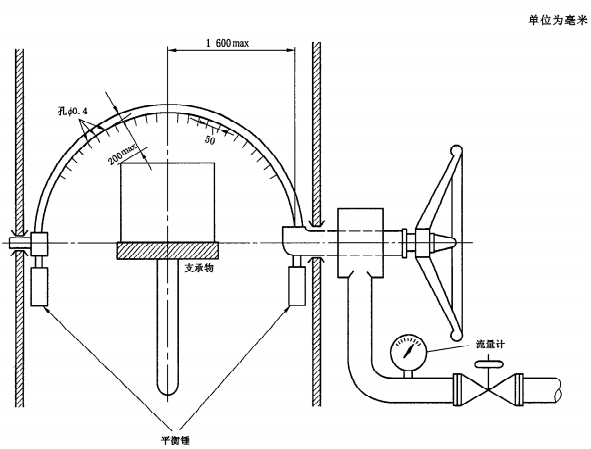 噴水孔布滿于擺管半圓180°內(nèi)。按表9規(guī)定調(diào)節(jié)水流量,并且流量計測量。