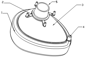 1-氣囊 2-掛鉤 3-罩體 4-單向閥 5-接頭