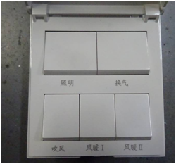 某PTC發(fā)熱元件浴霸,有取暖、照明和換氣功能,開關(guān)盒如圖1所示。如果開啟“取暖+照明”功能,實(shí)測(cè)輸入功率為2144 W;如果開啟“取暖+照明+換氣” 全部功能,實(shí)測(cè)輸入功率為2106 W。開啟全部功能的輸入功率反而比只開啟部分功能的功率小,這是因?yàn)閾Q氣功能改變了PTC電熱元件的散熱條件從而降低其功率。