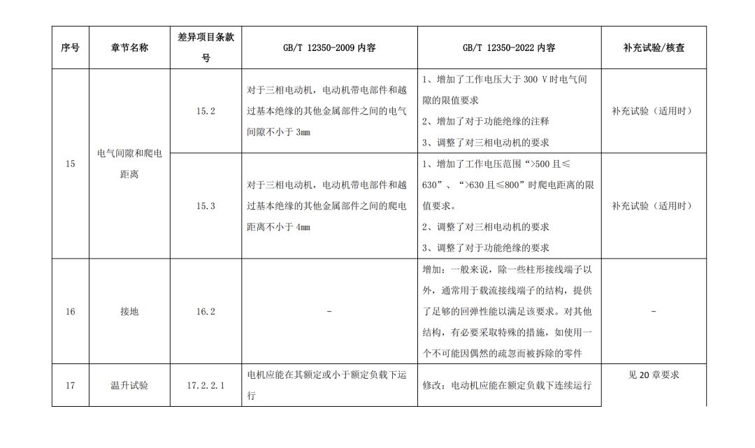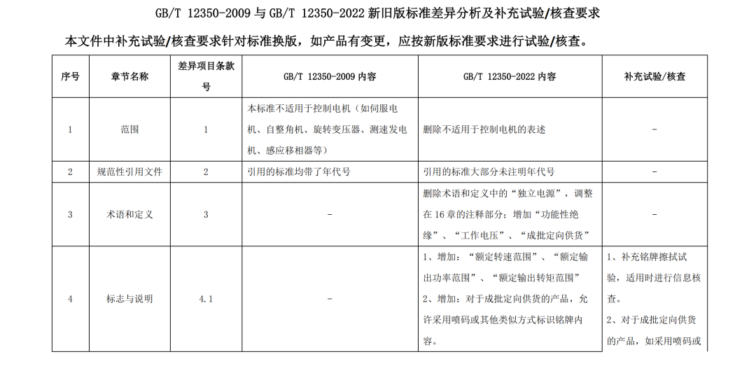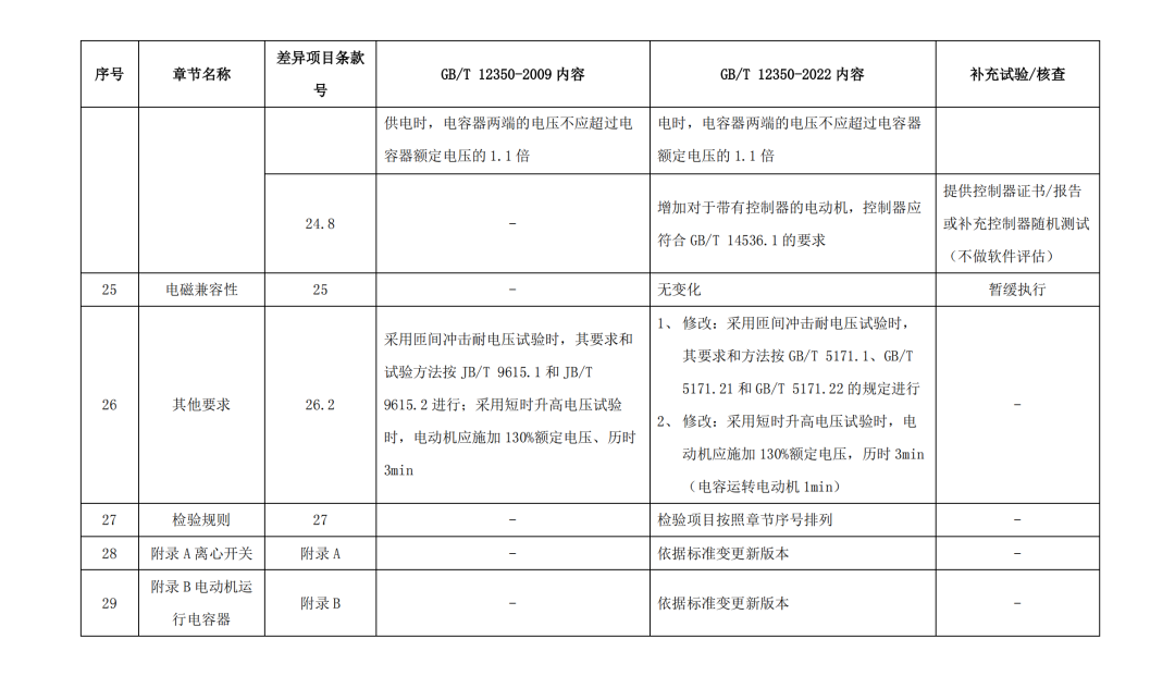 GB/T 12350-2022小功率電動機標準換版實施方式(附差異及補充試驗要求)