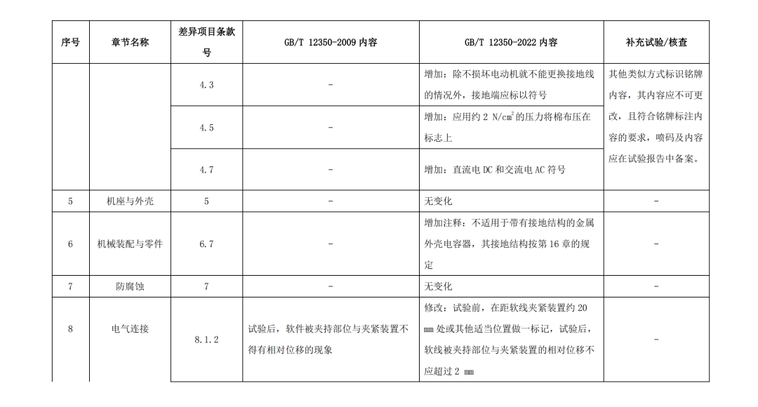 附件∶1.GB/T 12350-2009與GB/T 12350-2022新舊版標準差異分析及補充試驗/核查要求