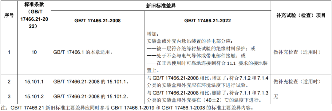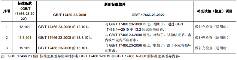 GB/T 17466.23新舊標(biāo)準(zhǔn)主要差異及補(bǔ)充試驗(yàn)(檢查))項(xiàng)目