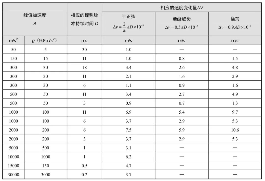 GB/T 2423.5—1995 中給出了脈沖波形和試驗嚴酷等級,試驗時可選用其中的一種脈沖波形和表 1給定的一種嚴酷等級和相應(yīng)的速度變化量。