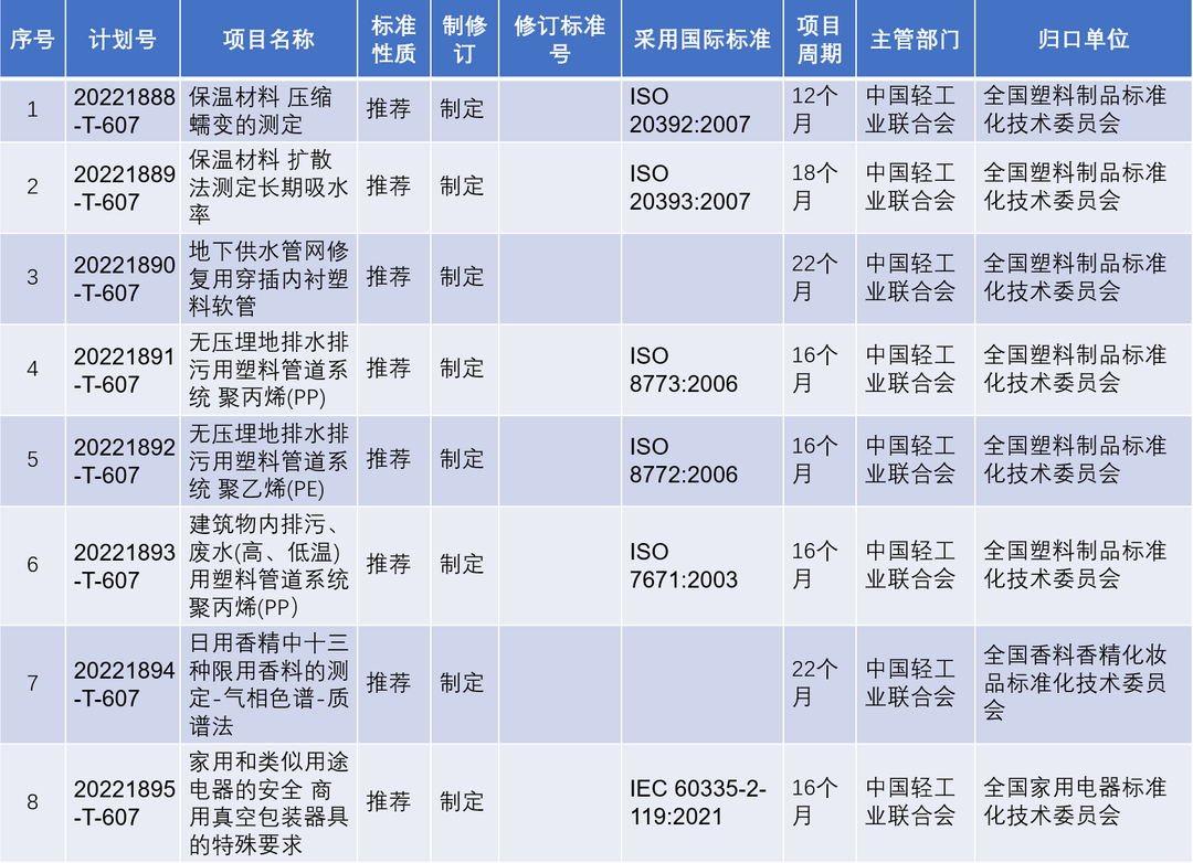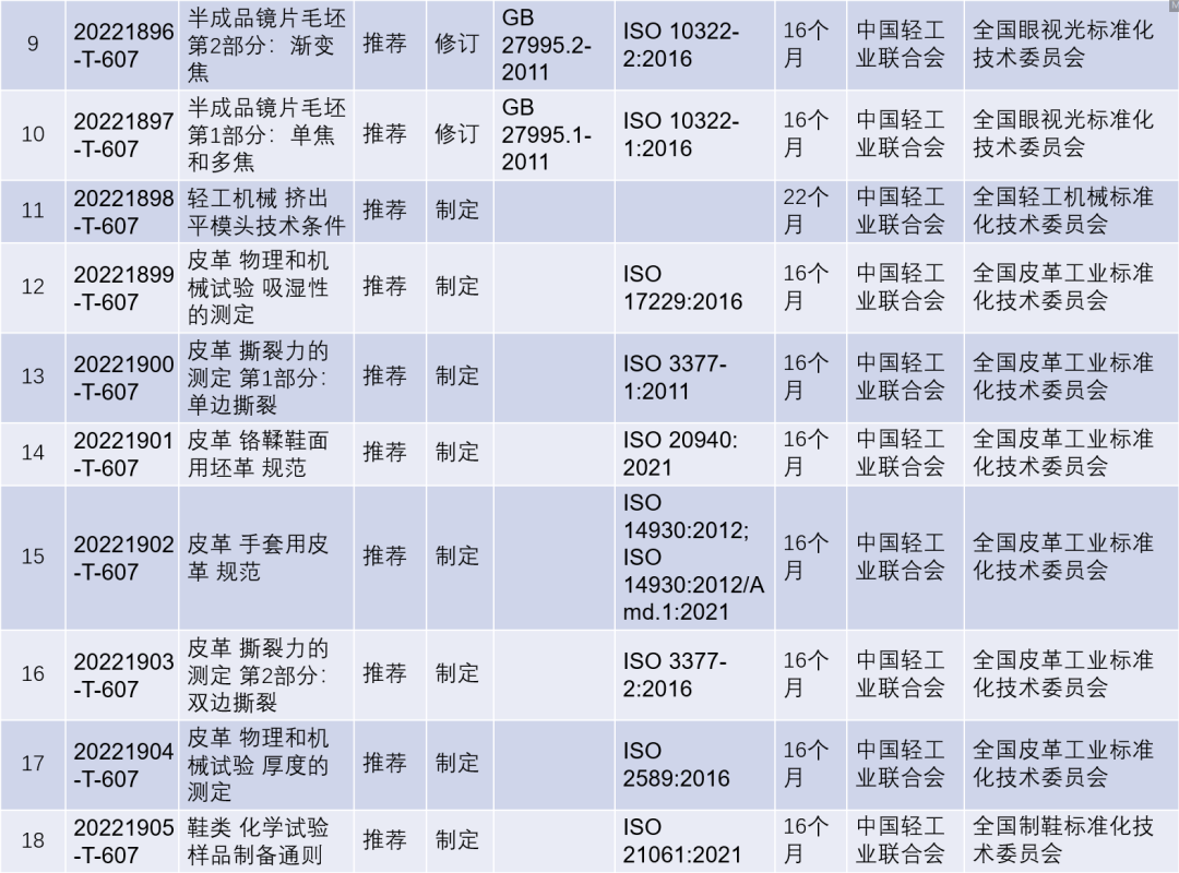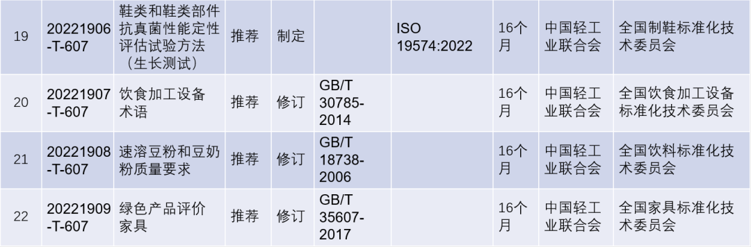 2022年第四批推薦性國(guó)家標(biāo)準(zhǔn)計(jì)劃項(xiàng)目(輕工行業(yè))