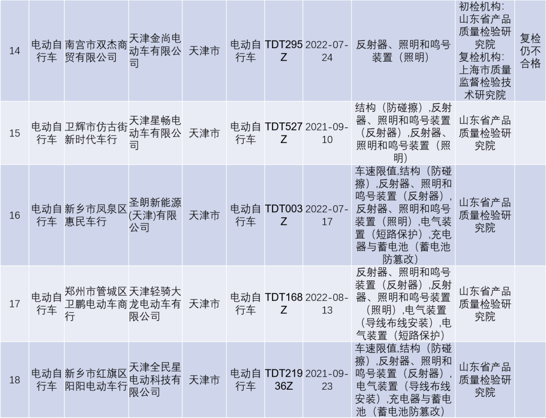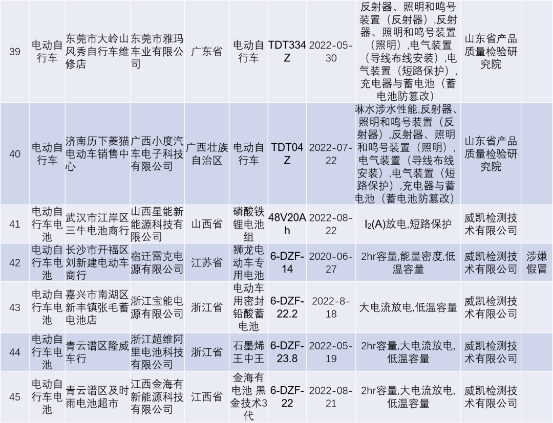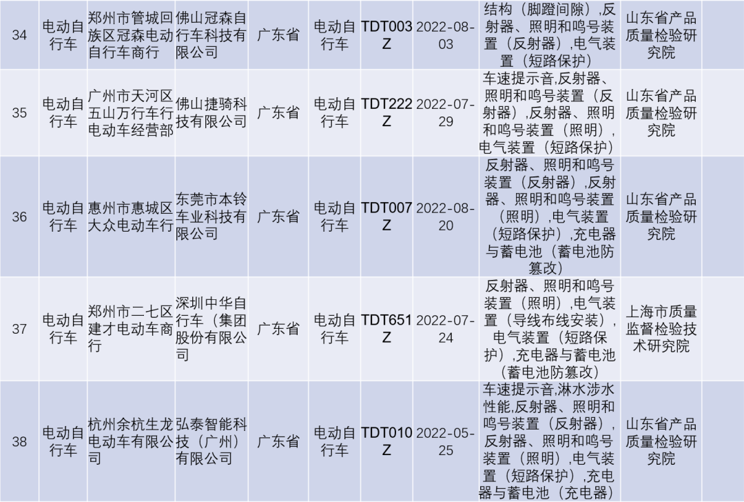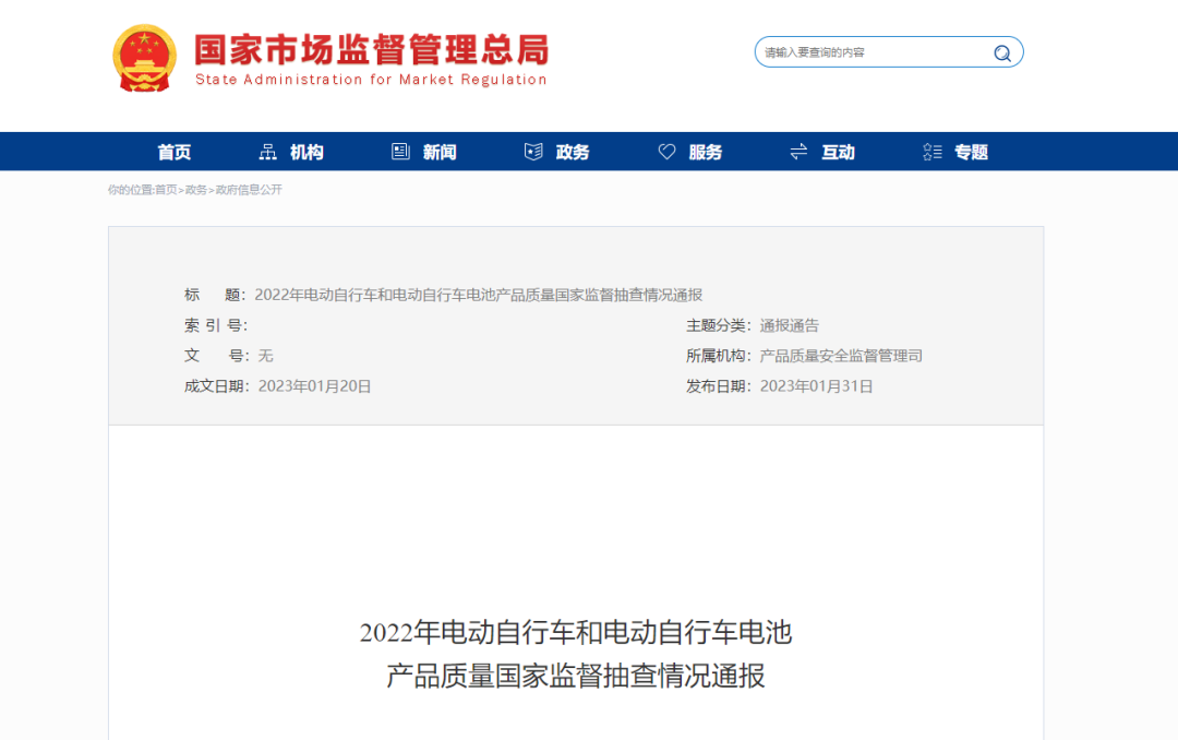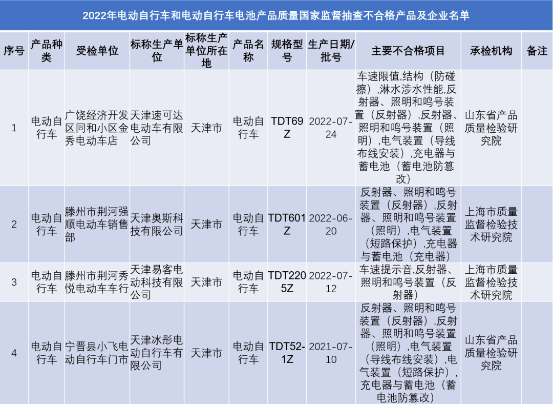 2022年電動(dòng)自行車和電動(dòng)自行車電池產(chǎn)品質(zhì)量國(guó)家監(jiān)督抽查情況通報(bào)發(fā)布