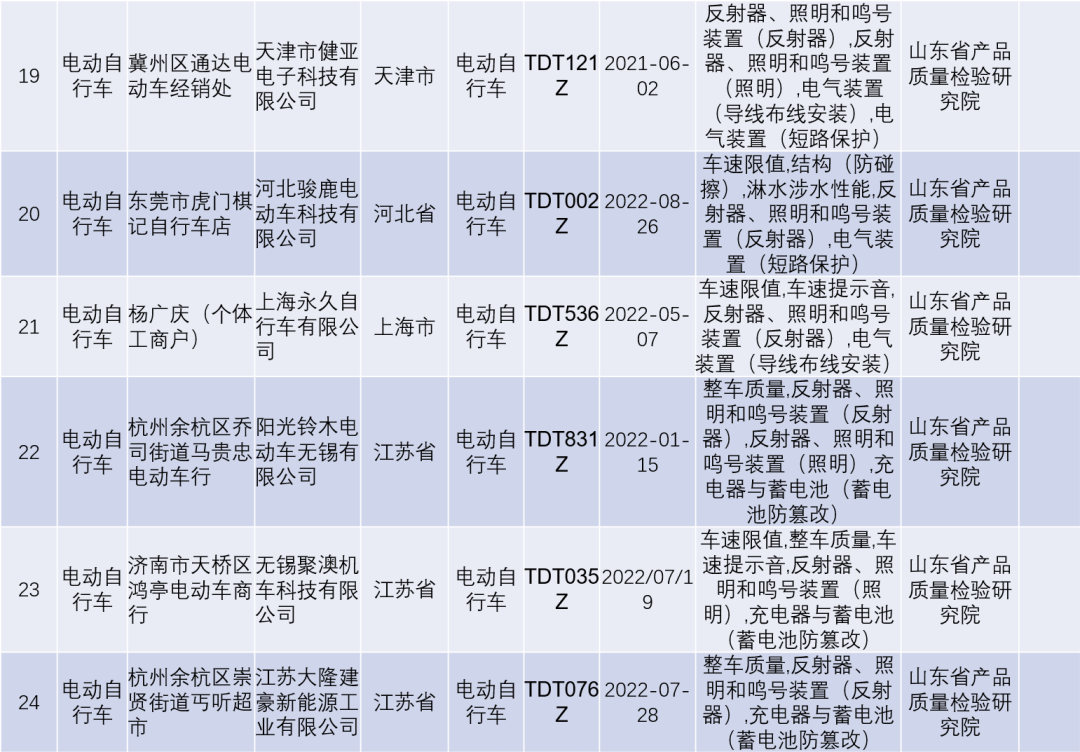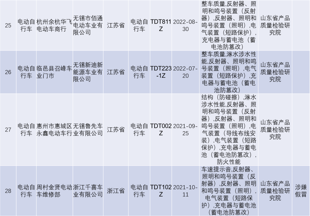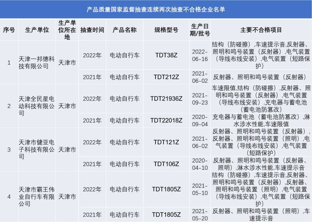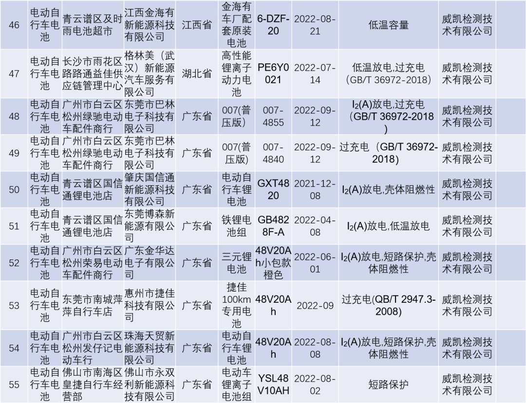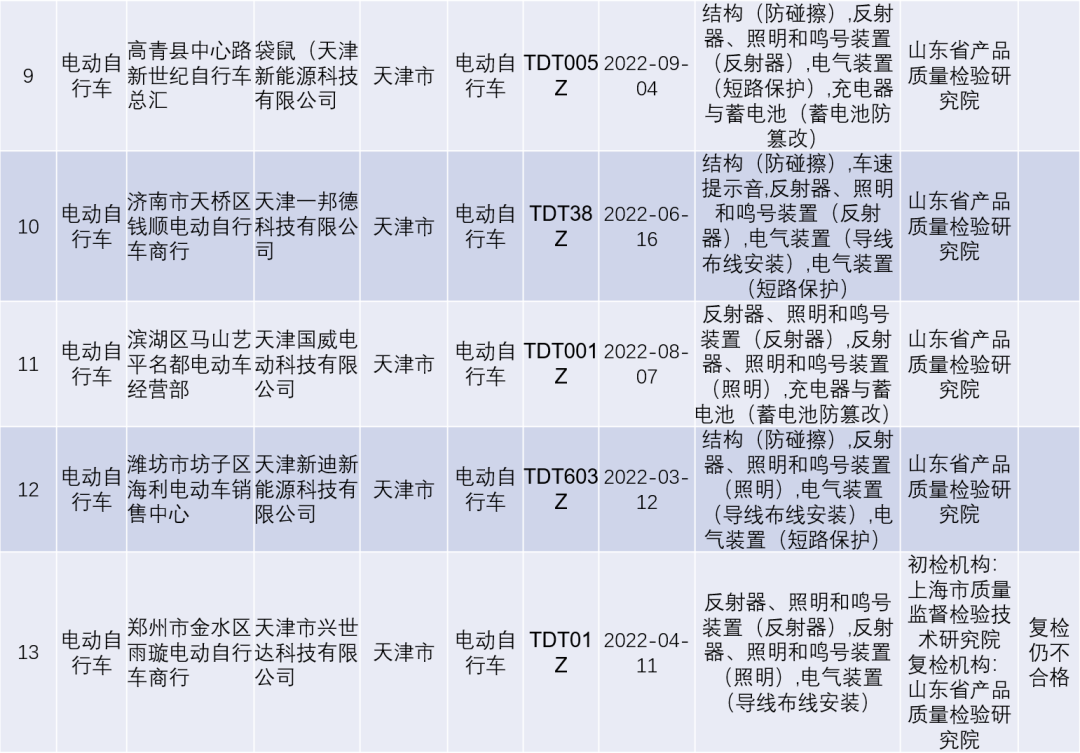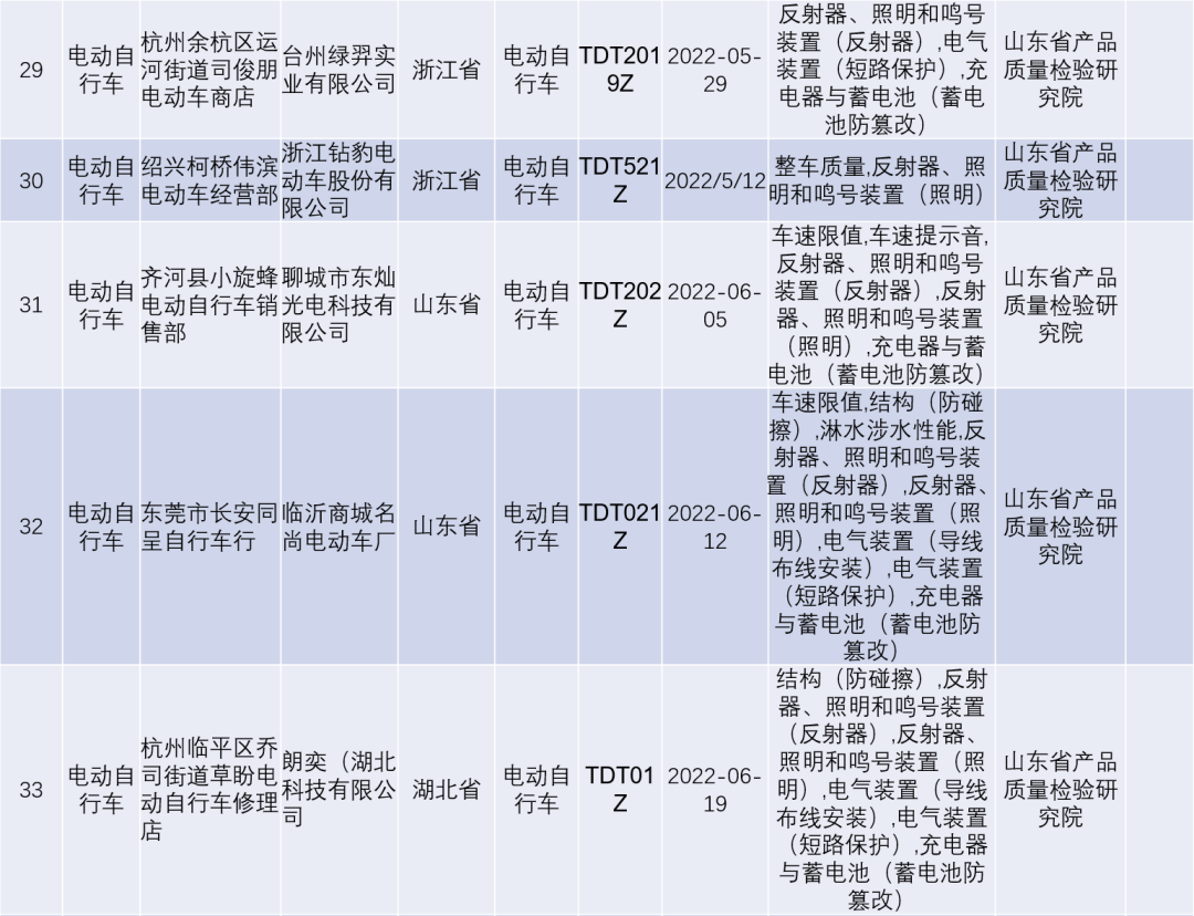 2022年電動(dòng)自行車和電動(dòng)自行車電池產(chǎn)品質(zhì)量國(guó)家監(jiān)督抽查情況通報(bào)發(fā)布