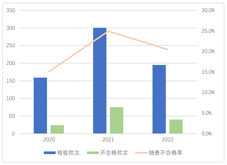 本次抽查主要涉及產(chǎn)業(yè)集聚區(qū)天津市、江蘇省、廣東省的生產(chǎn)企業(yè),分別抽查檢驗(yàn)了79批次、56批次、21批次產(chǎn)品,抽查不合格率分別為24.1%、10.7%、28.6%。
