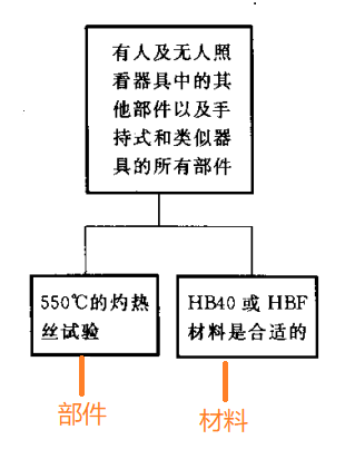 非金屬部件需要通過GB/T5169.11(GWEPT)的550℃的灼熱絲測試,如果材料類別滿足HB40以上(HB40、V-2、V-1、V-0、5VB、5VA這些類別)則該部件不用進行550℃的灼熱絲測試。