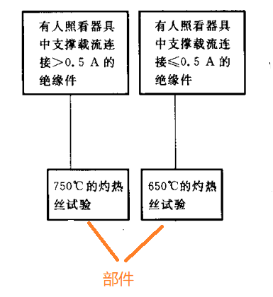 有人看照器具,支撐載流的絕緣部件及周圍3mm范圍內(nèi)的材料,載流>0.5A時,部件需要滿足GB/T 5169.11(GWEPT) 750℃;載流≤0.5A時,部件需要滿足GB/T 5169.11(GWEPT) 650℃;