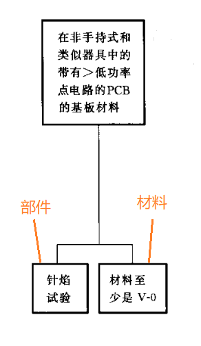 如果部件或者材料不能滿足上述要求,則周圍的部件(上方50mm高,20mm直徑)需要經(jīng)受針焰測試,或者材料滿足V-1等級以上的要求。
