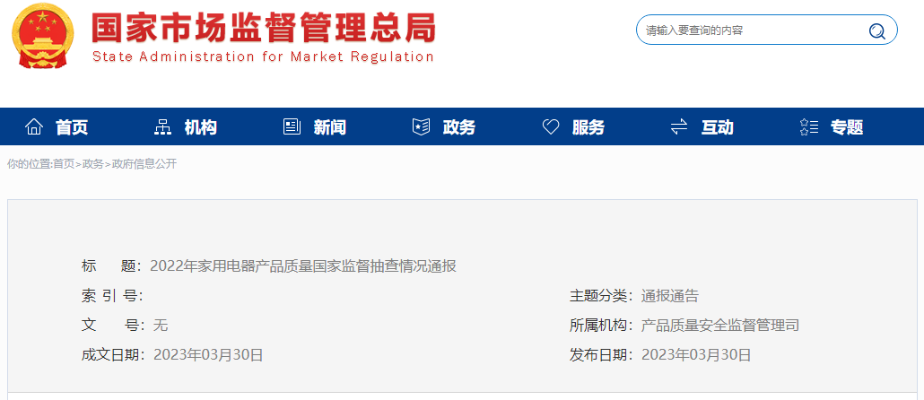 2022年,市場(chǎng)監(jiān)管總局組織家用電器產(chǎn)品質(zhì)量國(guó)家監(jiān)督抽查?,F(xiàn)將抽查情況通報(bào)如下: