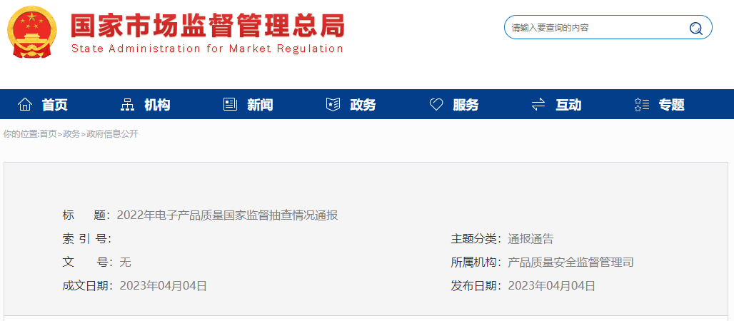 2022年,市場監(jiān)管總局組織電子產(chǎn)品質(zhì)量國家監(jiān)督抽查?,F(xiàn)將抽查情況通報如下: