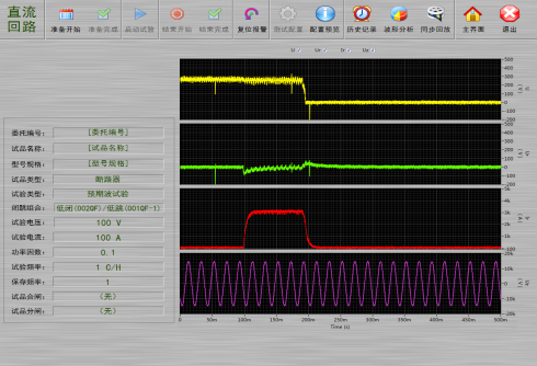 設(shè)備可讀取試驗(yàn)恒流電流等測(cè)量數(shù)據(jù),自動(dòng)根據(jù)試驗(yàn)類型分析試驗(yàn)所需要的參數(shù)值如通電時(shí)間、有效值等,實(shí)現(xiàn)實(shí)際測(cè)量對(duì)象和系統(tǒng)測(cè)量值和顯示值的統(tǒng)一。在波形顯示中查看實(shí)時(shí)狀態(tài),用于客戶數(shù)據(jù)進(jìn)行判斷、分析原因。 | |