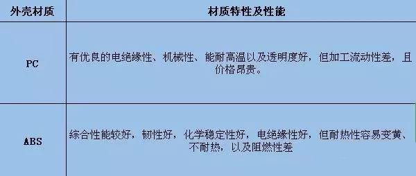 目前大多數(shù)公司正在使用的是ABS、PC材料如表1,但這些材料存在一些不足如:ABS不耐熱,阻燃性差以及容易變黃;PC加工流動(dòng)性差,易產(chǎn)生內(nèi)應(yīng)力且價(jià)格昂貴。