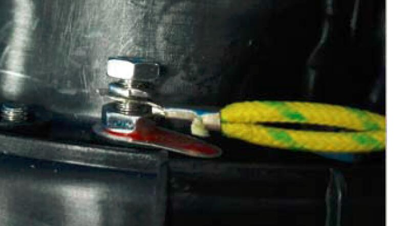 由上述步驟可見,在更換電源軟線過程中2號螺母沒有取下,在其下方被夾緊的接地符號自然也沒有被取下,如圖3所示,所以這種結(jié)構(gòu)符合GB 4706.1-2005標(biāo)準(zhǔn)7.8條款。