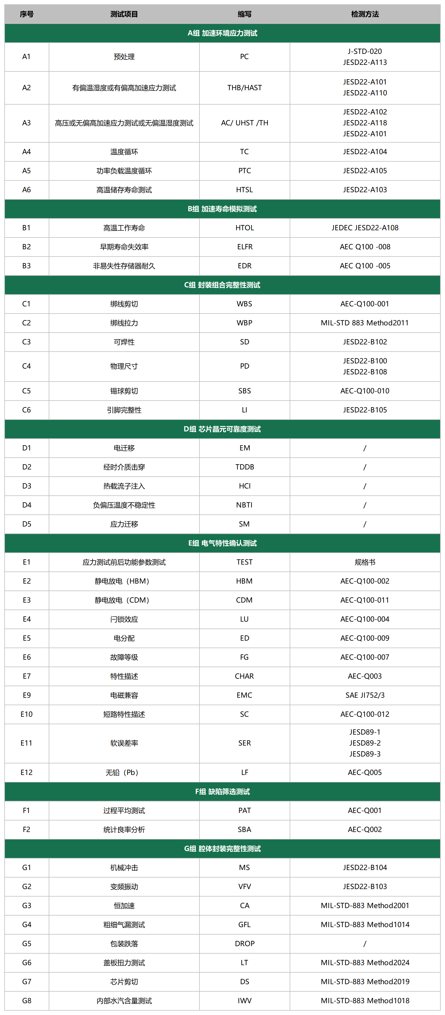 AEC-Q100規(guī)范 7大類別共41項(xiàng)的測(cè)試