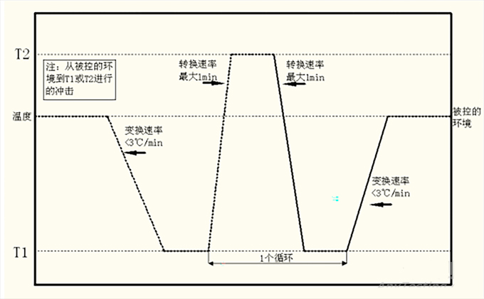 1)根據(jù)恒定極值溫度的單方向溫度沖擊,針對(duì)暴露于單方向溫度沖擊可能性很小的產(chǎn)品,在每種相應(yīng)條件下進(jìn)行至少一次沖擊;