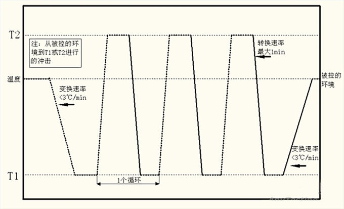 溫度循環(huán)的技術(shù)指標(biāo)包括:高溫溫度、高溫保持時(shí)間、下降速率、低溫溫度、低溫保持時(shí)間、上升速率、循環(huán)次數(shù)。試驗(yàn)的嚴(yán)苛程度取決于高/低溫、濕度和曝露持續(xù)時(shí)間。
