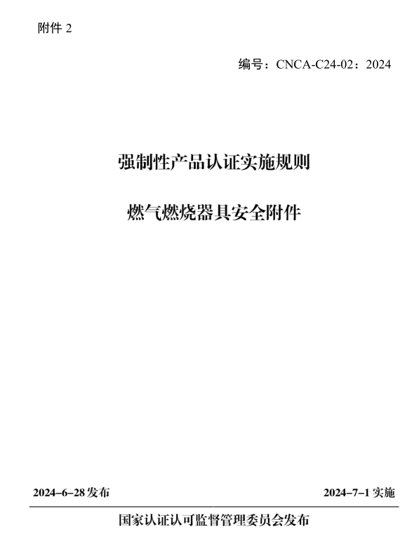 2024年燃?xì)馊紵骶甙踩郊獜?qiáng)制性產(chǎn)品認(rèn)證實(shí)施規(guī)則