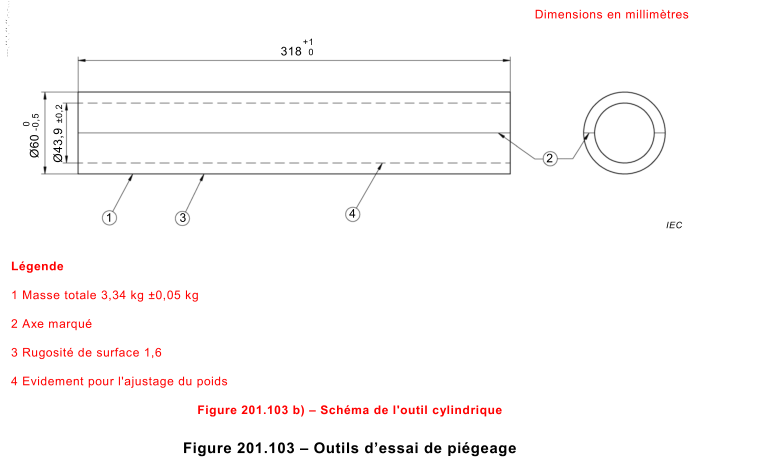 主要參數(shù)規(guī)格:柱形工具是根據(jù)醫(yī)用病床標(biāo)準(zhǔn)IEC60601-2-52圖201.103b設(shè)計(jì)而成,材質(zhì)為45#鋼,重量3.34±0.05kg.