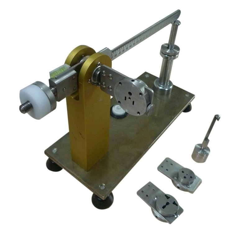 9 | 插頭力矩試驗(yàn)裝置 (GS-LJ109) | 符合GB/T2099.1-2021標(biāo)準(zhǔn)第14.23.3章節(jié)試驗(yàn)要求、GB4706第22.3條等標(biāo)準(zhǔn)要求,萬能插座(適合GB、BS插頭使用)、 UL插座 | 設(shè)備概述:符合GB/T2099.1-2021標(biāo)準(zhǔn)第14.23.3章節(jié)試驗(yàn)要求、GB4706第22.3條、GB8898-2001第15.4.1條及圖11、IEC60065圖11等標(biāo)準(zhǔn)要求。 設(shè)備用途: 用于檢測帶有插銷的直插式設(shè)備在正常使用時(shí)對插座產(chǎn)生的機(jī)械應(yīng)力是否在規(guī)定范圍之內(nèi),增加配置也可作為螺口式燈座的扭力試驗(yàn)設(shè)備。 主要技術(shù)參數(shù): 1、接觸面與軸心面距離:8mm; 2、力臂:0-200mm; 3、砝碼2.5N及1N 1個(gè),可實(shí)現(xiàn)0.25N力矩及其他力矩; 儀器配置: 標(biāo)準(zhǔn)插座按照GB/T1002-2021圖2和圖4尺寸制作 |