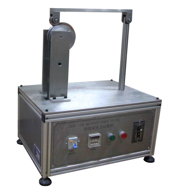 18 | 電源線拉力扭轉(zhuǎn)試驗(yàn)機(jī) (GS-LN209) | 符合GB/T2099.1-2021標(biāo)準(zhǔn)中第23章節(jié)“軟纜及其連接”試驗(yàn)要求 | 設(shè)備概述: 本試驗(yàn)機(jī)符合GB/T2099.1-2021標(biāo)準(zhǔn)中第23章節(jié)“軟纜及其連接”試驗(yàn)要求、GB4706.1-2005《家用和類似用途電器的安全第1部分通用要求》第25.15試驗(yàn)要求;用于對帶有電源軟線的器具,以及打算用柔性軟線永久連接到固定布線的器具等家用電器產(chǎn)品、醫(yī)療器械、燈具等電源線在接線端處進(jìn)行拉力和扭矩兩項(xiàng)試驗(yàn),檢查夾緊裝置是否牢固。 試樣范圍:家用電器產(chǎn)品、醫(yī)療器械、燈具、插頭插座 結(jié)構(gòu)及功能:設(shè)備采用Z字結(jié)構(gòu),可用來測試電冰箱、洗衣機(jī)等大型家電電源線夾緊端子的牢固程度。試驗(yàn)方法為在導(dǎo)線試樣距固定裝置位置20mm處做一標(biāo)記,然后以1次/秒速率平緩的施加拉力25次,然后在靠近器具位置施加一扭矩,持續(xù)1分鐘。試驗(yàn)過后,導(dǎo)線標(biāo)記位位移不超過2mm。 主要技術(shù)參數(shù): 1、工作電源:AC220V 50HZ; 2、拉力砝碼:20N三個(gè)、30N兩個(gè)(可實(shí)現(xiàn)30N、60N、80N、100N 的拉力); 3、扭力砝碼:5N、12.5N、17.5N各一個(gè),扭力臂20mm(可實(shí)現(xiàn)0.1Nm、0.25Nm、0.35Nm的扭矩); 4、受拉次數(shù):0~999999可預(yù)置,默認(rèn)25次; 5、受拉頻率:1次/秒; 6、扭矩時(shí)間:0.01S~99小時(shí)59分鐘59秒。 7、夾具:拉力夾具與扭力夾具組合,中間通過軸承配合,減小扭力試驗(yàn)時(shí)摩擦; 8、設(shè)備采用電機(jī)凸輪頂桿機(jī)構(gòu),Z字型連接,使夾具能夾持電源線在底面150mm以上的試樣。 |