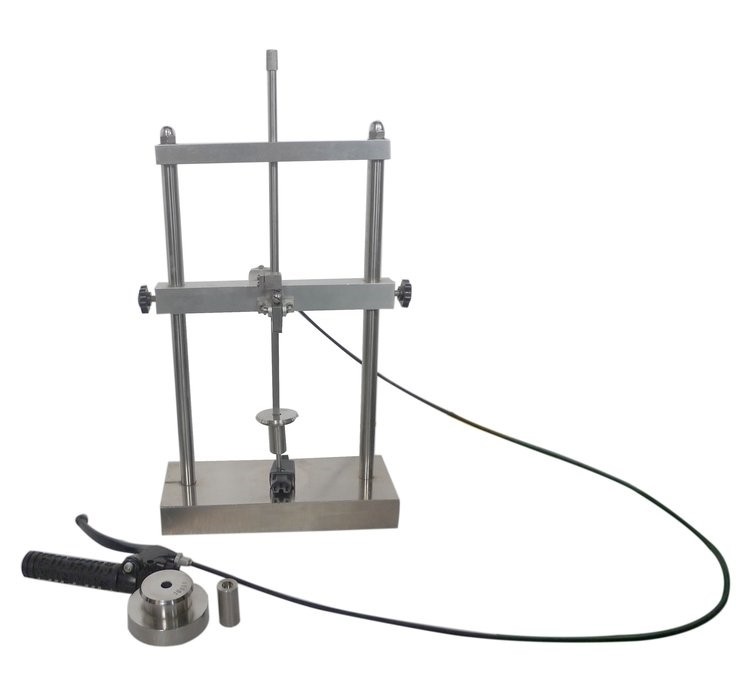 8 | 非實(shí)心插銷硬度測試裝置(GS-YT104) | 符合GB/T2099.1-2021標(biāo)準(zhǔn)第14.2章節(jié)及圖14規(guī)格要求、IEC60884-1-2013圖14、VDE0620等標(biāo)準(zhǔn)要求 | 一、 產(chǎn)品概述 符合GB/T2099.1-2021標(biāo)準(zhǔn)第14.2章節(jié)及圖14規(guī)格要求、IEC60884-1-2002圖14、VDE0620等標(biāo)準(zhǔn)要求,用于檢驗(yàn)非實(shí)心插銷的機(jī)械強(qiáng)度。 二、技術(shù)參數(shù): 1、鋼棒:Φ4.8mm; 2、負(fù)荷重量:100N; 3、手動旋轉(zhuǎn)手輪使插銷承重受壓. 三、 試驗(yàn)方法 用負(fù)載100N的Φ4.8mm鋼棒垂直于插銷軸線壓在非實(shí)心插銷上1min,受壓點(diǎn)變形不得大于0.15mm,插銷其它尺寸變化不大于0.6mm,以此判斷非實(shí)心插銷是否有足夠的硬度。 |