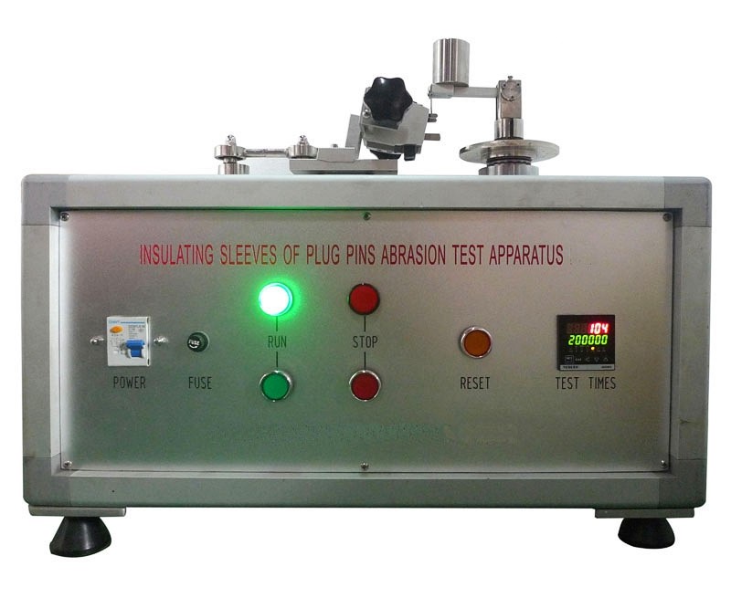 26 | 插頭絕緣護(hù)套耐磨損試驗(yàn)機(jī) (GS-HT305) | 符合滿足GB/T2099.1-2021標(biāo)準(zhǔn)中24.8條款及圖28、IEC 60884-1圖28和BS1363圖9標(biāo)準(zhǔn)試驗(yàn)要求 | 設(shè)備概述: 本裝置符合滿足GB/T2099.1-2021標(biāo)準(zhǔn)中24.8條款及圖28、IEC 60884-1圖28和BS1363圖9的標(biāo)準(zhǔn)要求,適用于檢測插頭的插銷絕緣襯套的耐磨損性能。 設(shè)備組成及工作原理: 試驗(yàn)裝置是由一個(gè)水平放置的橫梁和線性運(yùn)動的夾具座組成,橫梁末端裝有直徑為1mm的短鋼絲彎成的U字形頭(U字形的兩個(gè)點(diǎn)垂直固定在橫梁上),鋼絲U型底邊為6mm直線工作部分。 將U型鋼絲6mm直線底邊壓在插銷絕緣套上,電機(jī)帶動安裝有插銷的夾具座做前后往復(fù)運(yùn)動,從而鋼絲與插銷絕緣試樣摩擦進(jìn)行試驗(yàn)。 主要技術(shù)參數(shù): 1、工作電源:AC220V、50HZ; 2、工作次數(shù):1~999999可預(yù)置 ; 3、刮磨頻率:30次/分鐘,往、返各計(jì)一次; 4、壓力荷重:4N; 5、工作行程:9mm ; 6、工位:單工位(可定制雙工位)。 |