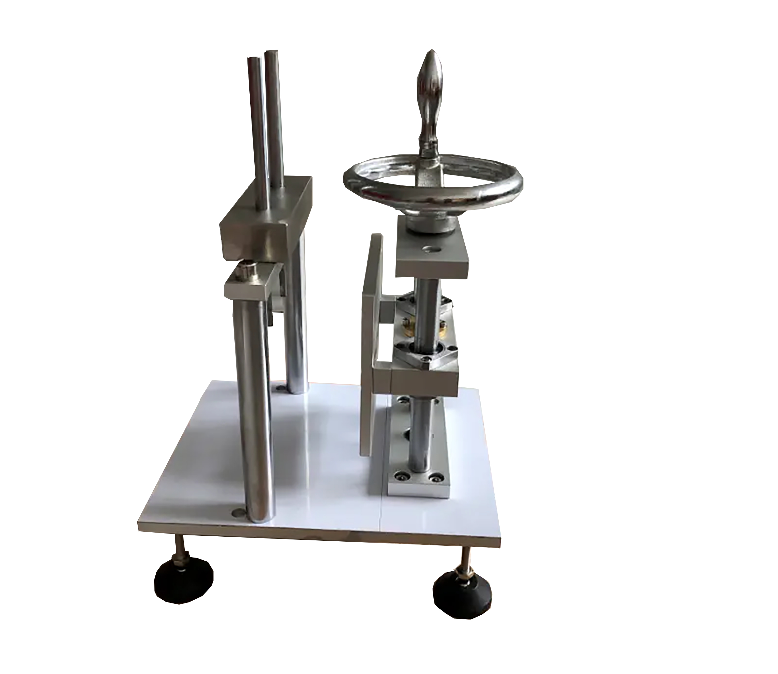 34 | 熱壓縮試驗(yàn)裝置 (GS-RY210) | 根據(jù)GB/T2099.1-2021標(biāo)準(zhǔn)中24.20、25.4條款及圖38、IEC60884-1圖38、VDE0620等標(biāo)準(zhǔn)試驗(yàn)要求 | 設(shè)備概述: 本裝置是根據(jù)GB/T2099.1-2021標(biāo)準(zhǔn)中24.20、25.4條款及圖38、IEC60884-1圖38、VDE0620等標(biāo)準(zhǔn)制作,用于考核電器附件及明裝式安裝盒在受熱情況下的耐壓性能,與加熱箱配套使用。 設(shè)備結(jié)構(gòu)組成: 熱壓縮試驗(yàn)裝置由移動壓塊、固定壓塊、導(dǎo)軌支架及砝碼組成,壓塊具有一個(gè)半徑為R25㎜的圓柱形表面,菱角倒圓R2.5mm,砝碼重量為20N±。 |